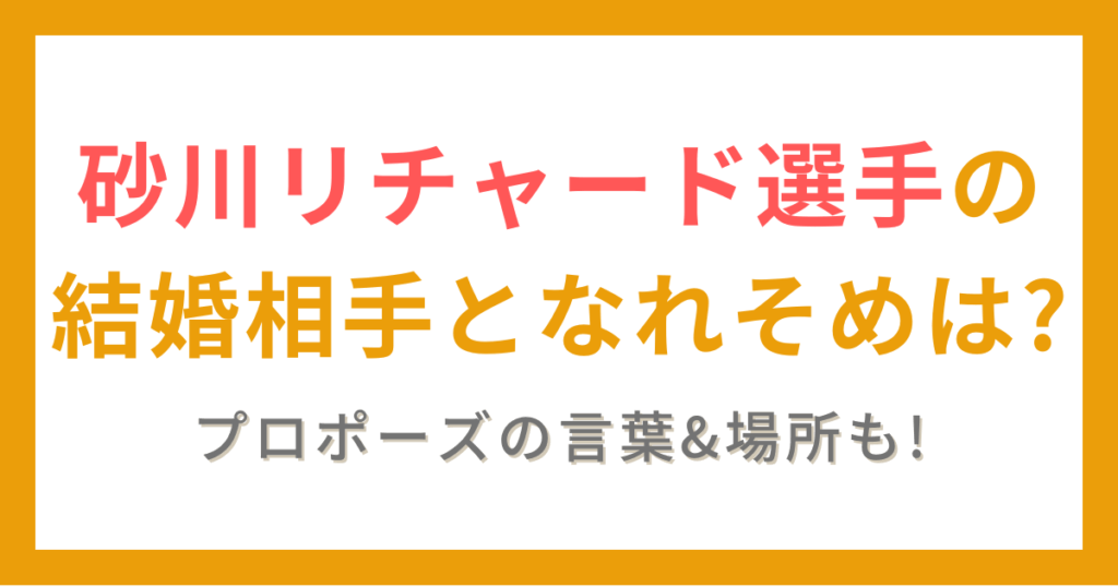この記事では、巨人の砂川リチャード選手の結婚について、なれそめやお相手の情報など、情報を一挙にまとめています。 砂川リチャード選手が結婚!遠距離恋愛を経て 巨人の砂川リチャード内野手(26)が、12月21日に婚姻届を提出し結婚。 遠距離恋愛を経て... -