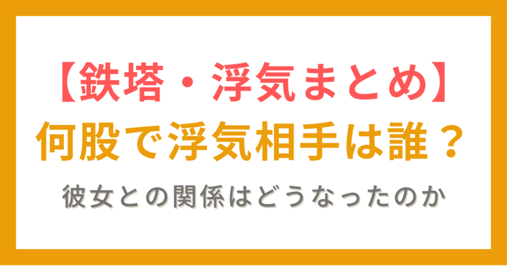 【鉄塔・浮気まとめ】何股だった?浮気相手は誰?彼女との関係はどうなった?