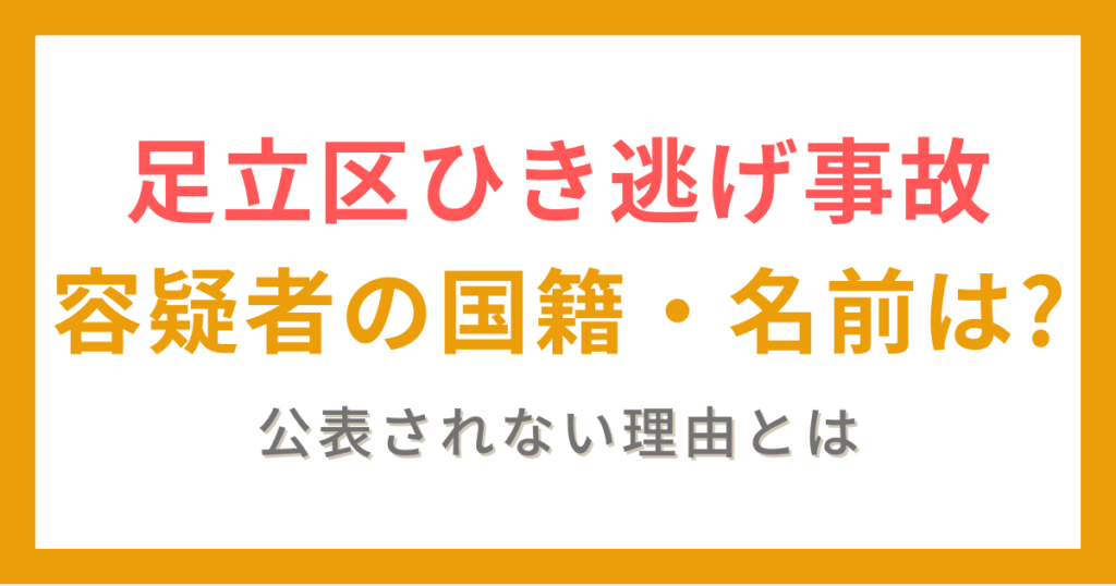 足立区ひき逃げ事故犯人の「国籍」「名前」は?公表されない理由とは