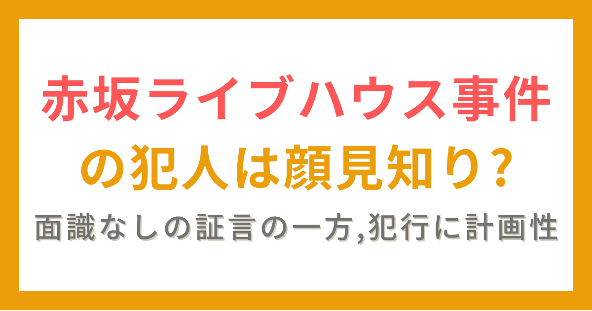 赤坂ライブハウス事件の犯人は顔見知り?計画性も指摘