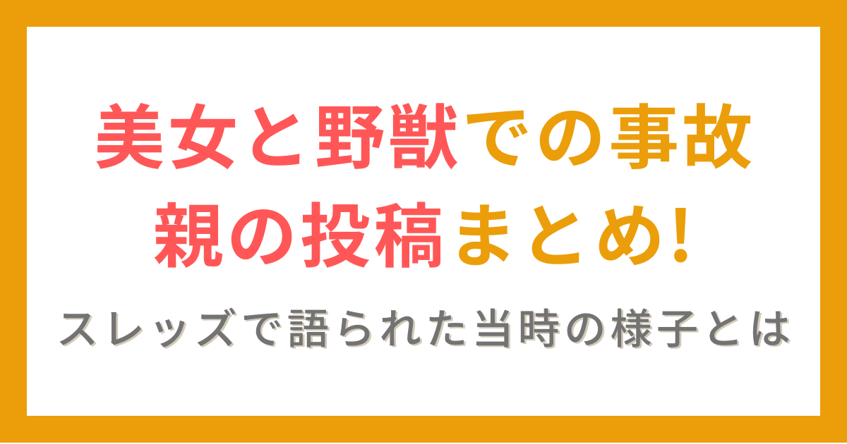 この記事では、美女と野獣の事故について、親だという人物の投稿をまとめました。