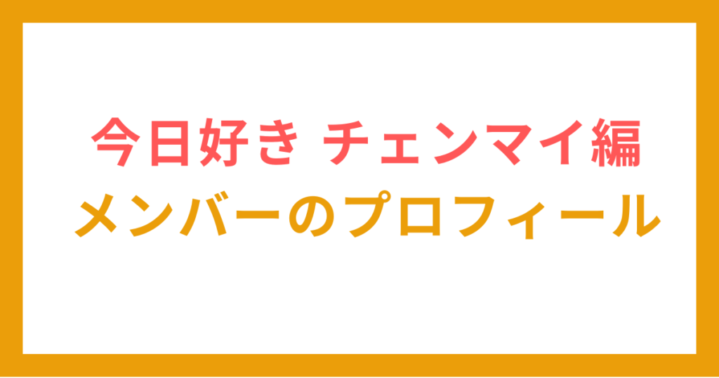【今日好き】新シーズン・チェンマイ編メンバーのプロフィール一覧