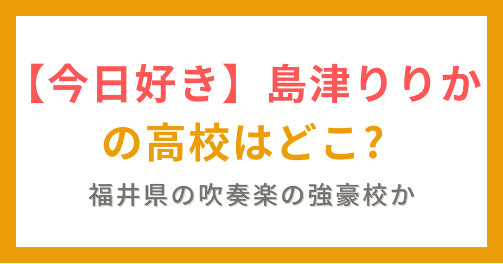 【今日好き】島津りりかの高校は福井高校?吹奏楽の強豪校か