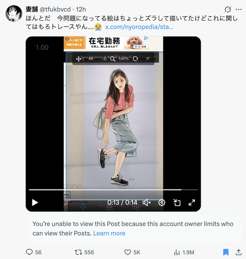 2022年、多くの作品が「写真からの無断利用・トレースではないか」と指摘され炎上。