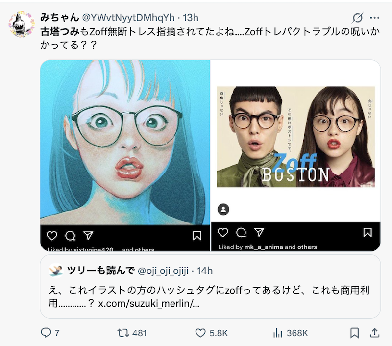 ルミネの広告だけでなく、他の作品にも「無断利用・トレースではないか」という疑惑が浮上しています。