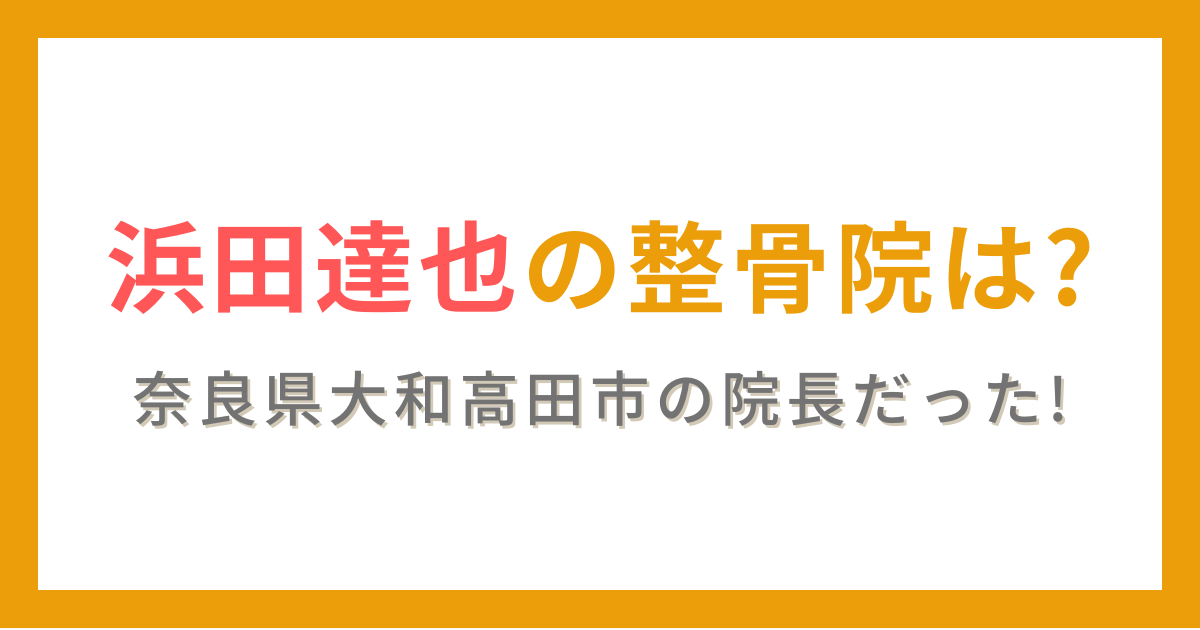 浜田達也の整骨院はどこ?奈良県大和高田市で院長職