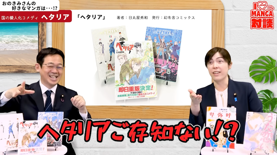 小野田大臣は、「一番長くジャンルに生息していたのがヘタリア」だと話しています。