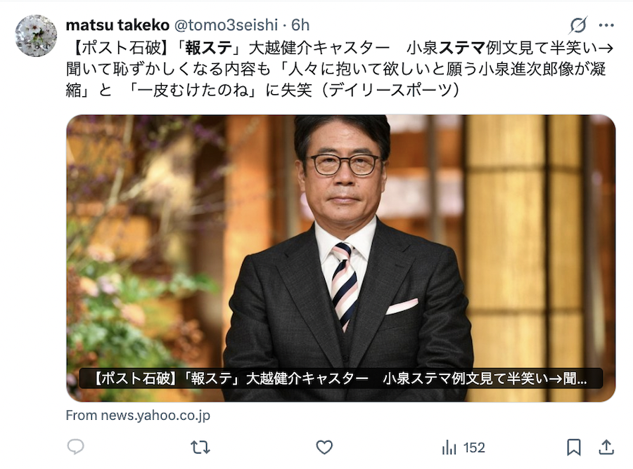 小泉陣営のステマ報道に対する大腰キャスターのコメントも問題になりました。