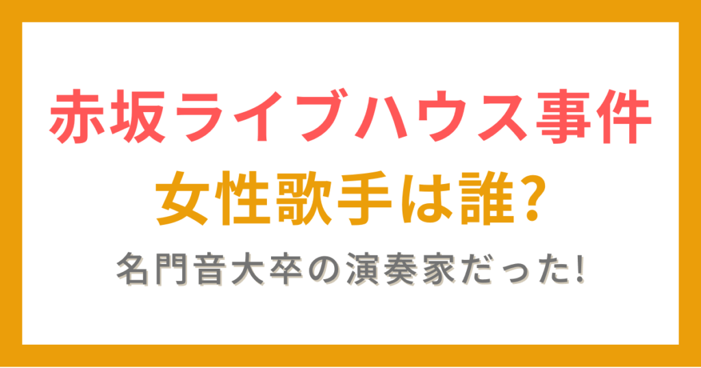 【赤坂ライブハウス事件】女性歌手は誰?名門音大卒の演奏家だった