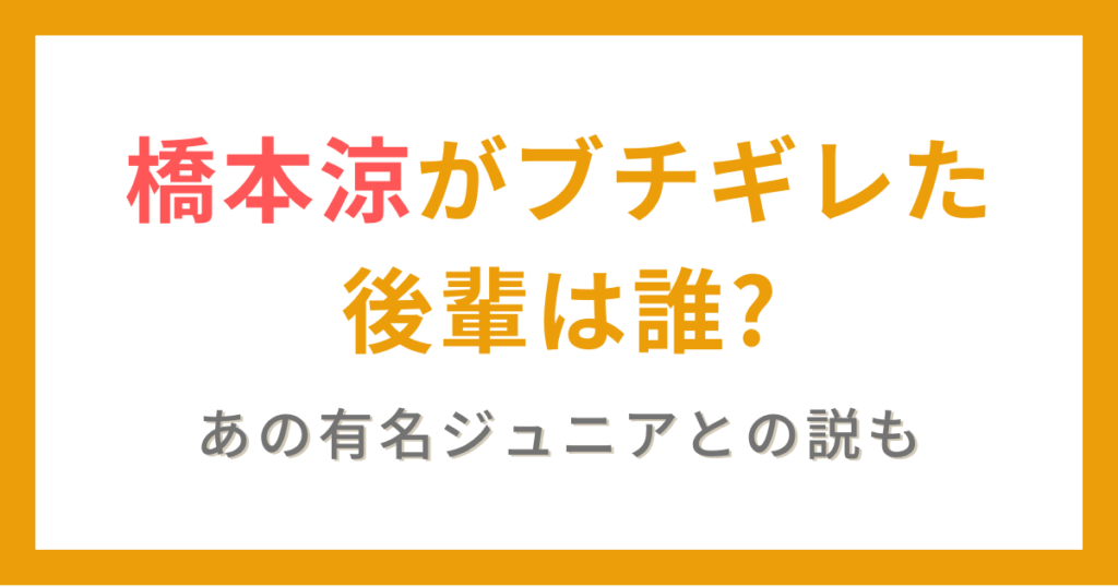 【特定】橋本涼がブチギレた後輩は誰?あの有名ジュニアとの説!