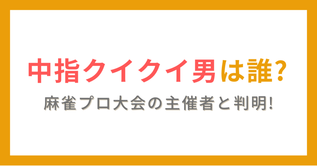 【特定】中指クイクイ男は誰? 麻雀界の有名人だった